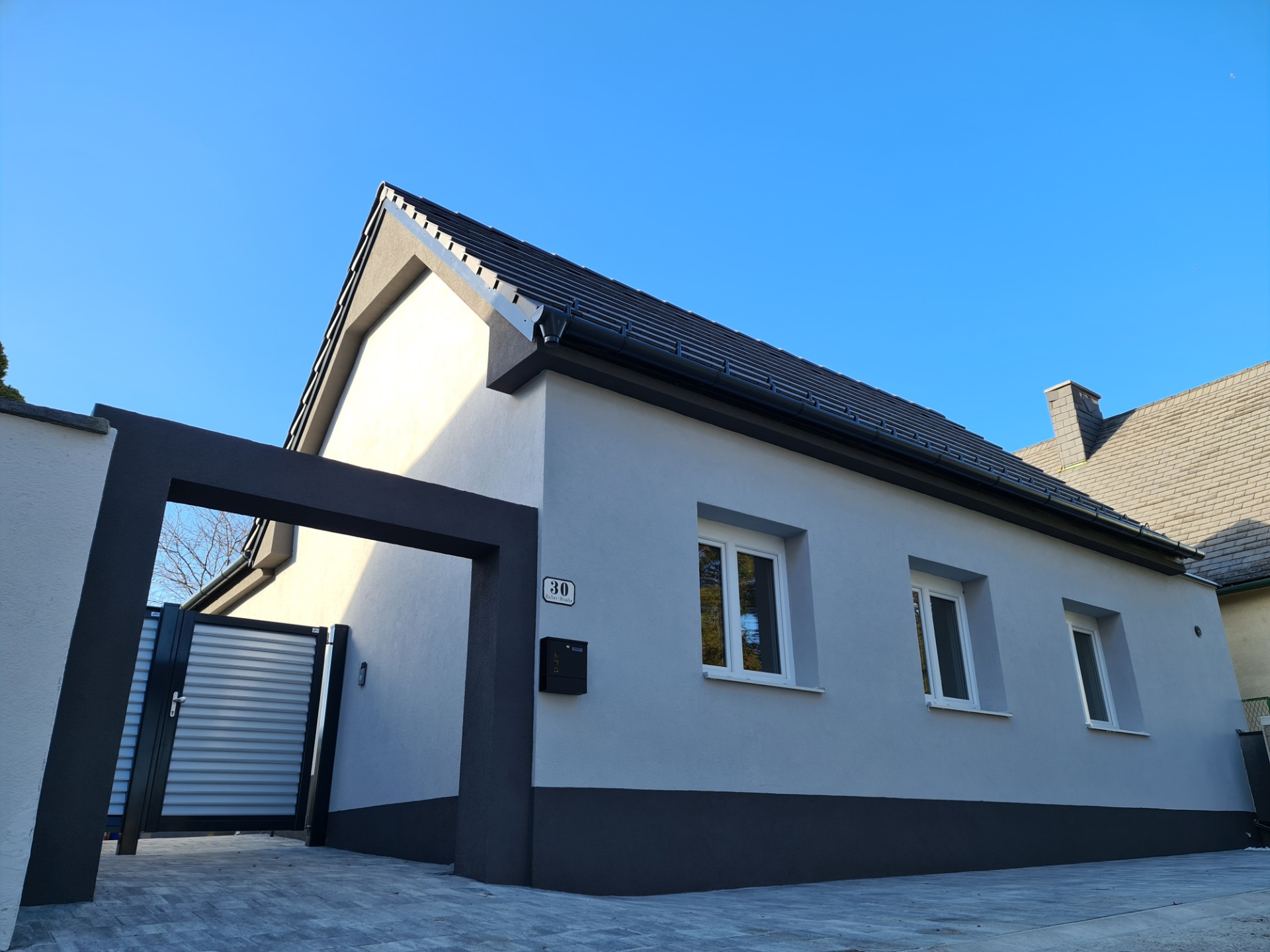 - Raumaufteilung: 3 Schlafzimmer, Wohnküche mit Blick in den Garteen, Badezimmer mit großzügiger Dusche und WC, eine zusätzliche Toilette, Abstellraum etc